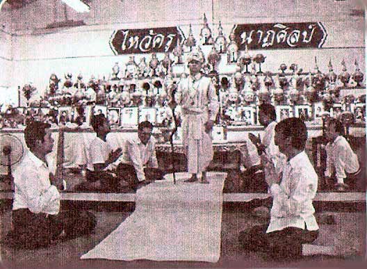 ๑.๑ ทำพิธีอัญเชิญครูมาในพิธี เพื่อให้ศิษย์กราบไหว้เป็นศิริมงคล