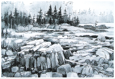 ภาพวาดเส้นทิวทัศน์ซึ่งเกิดจากการถ่ายทอดความงามของเส้น รูปร่าง รูปทรง แสงเงา