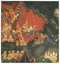 กรุงเทพมหานคร เป็นภาพแสดงเนื้อหาตอนพระพุทธเจ้าเสด็จลงจากดาวดึงส์