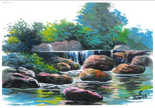 น้ำตก เทคนิคสีโปสเตอร์ ผลงานของ อวยชัย จินวรรณ