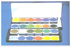 2. ชนิดบรรจุตลับอยู่ในกล่อง มีเนื้อสีแห้งบรรจุตลับไว้หลายสีอยู่ในกล่อง