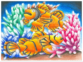 “ใต้ทะเล” ผลงานวาดภาพด้วยเทคนิคสีชอล์ก ของนักเรียนโรงเรียนเทพศิรินทร์