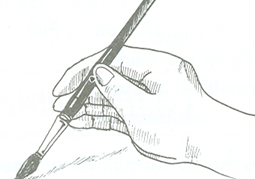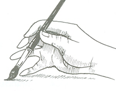 1. แบบเขียนหนังสือ เหมาะสำหรับการใช้เขียนตัวหนังสือ ร่างภาพ เขียนภาพและแรเงาในส่วนที่มีความละเอียดประณีต วิธีนี้จะใช้ในพื้นที่วงแคบ