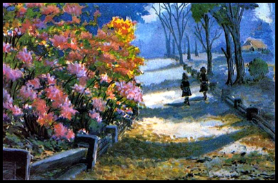 ภาพเขียนสีโปสเตอร์ ผลงานของ ด.ช.ชนะภัย เกิดนิยม (พ.ศ. 2535 ) แสดงแสงเงา และระยะของภาพได้อย่างเหมาะสม โดยใช้เทคนิคหรือกลวิธีการระบายสีแบบผสมผสานทั้งในลักษณะการระบายสีจากสีแก่ไปหาสีอ่อน และการระบายสีจากสีอ่อนไปหาสีแก่