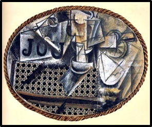 เป็นภาพที่สร้างสรรค์ด้วยการนำเอาเศษกระดาษและเสื่อ น้ำมันที่พิมพ์เป็นภาพลายสานของเก้าอี้หวายมาจัดเป็นองค์ประกอบศิลป์ ปะติดลงบนผ้าใบทำเป็นรูปวงรีมีเชือกขดล้อมเป็นกรอบ ผสมผสานกับการระบายสีน้ำมันให้เป็นภาพกลมกลืนงดงาม