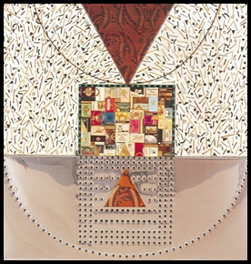 แสดงความงามการจัดองค์ประกอบศิลป์ด้วยวิธีการปะติด (COLLAGE)ของวัสดุต่างๆ เช่นกล่องไม้ขีด ก้านไม้ขีดซึ่งเป็นของสะสมที่ได้รับมาจากผู้ให้