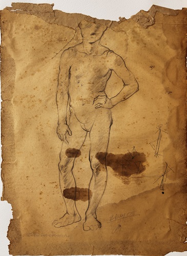"ฝึกเขียนรูปคนเพื่อเตรียมสอบเข้าคณะจิตรกรรมฯ มหาวิทยาลัยศิลปากร" 40.5x56 ซม. วาดเส้นบนกระดาษบรู๊ฟ ปี2508"