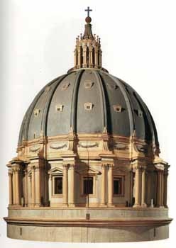 โดมของโบสถ์เซนปีเตอร์ มีขนาดใหญ่มาก นับเป็นอาคารที่มีความสูง เเละใหญที่สุดในโลกในเวลานั้น เขาสามารถเเก้ปัญหาจากผลงานการสร้างโดม โดยเขาสร้างเสาขนาดใหญ่เส้นผ่าศูนย์กลาง60ฟุต จำนวน4ต้น เพื่อใช้เป็นโครงสร้างรับน้ำหนักของโดมโดยเฉพาะ เเม้ไมเคิลเเอนเจลโลได้ถึงเเก่กรรมก่อการสร้างโบสถ์จะเสร็จสมบูรณ์ เเละมีจิอาโคโม เดลลา ปอร์ตา เเละโดเมนิโค ฟอนตานา ได้ควบคุมการก่อสร้างตามเเบบหุ่นจำลองไท่เขาทำไว้ทุกประการ