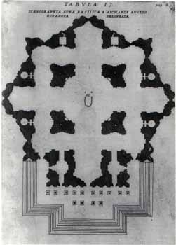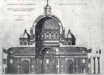 จากสถาปัตยกรรมของบรูเนลเลสกีกับอัลเเบร์ตีในเรื่องของการวางเเผนผังอาคารเด่นสำคัญอยู่ตรงกลาง กำหนดสร้างโดมใหญ่เป็นศูนย์กลาง ซึ่งได้รับเเรงบันดาลใจจากรูปทรงโครงสร้างของโดมวัดประจำเมืองฟลอเรนซ์ กับโดมของเทวาลัยเเพนธาออน อันเป็นสถาปัตยกรรมชิ้นเยี่ยมของโรมัน