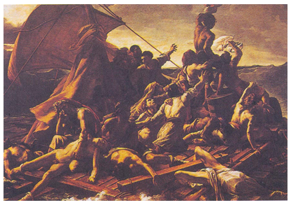 จิตรกรเขียนภาพขึ้นจากจินตนาการที่ได้ข้อมูลของผู้รอดชีวิตจากการอับปางของเรือฟริเกตเมดูสา