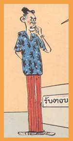 ภาพ ก. แบบยืดสัดส่วนผลงานของวัฒนา เพชรสุวรรณ แบบหดสัดส่วน (นักเขียนการ์ตูนในหนังสือขายหัวเราะ)