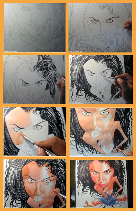 2. ออกแบบร่างภาพ หลังจากศึกษาบุคลิกของตัวละครตามเนื้อหาที่เขียนกำหนดไว้จนเข้าใจแล้ว จึงใช้จินตนาการเป็นภาพขึ้นในสมองก่อน จากนั้นจึงถ่ายทอดออกมาเป็นภาพร่างคร่าวๆ เพื่อนำมาใช้เป็นแนวแบบวาดภาพบุคลิกของตัวละครนั้นต่อไป