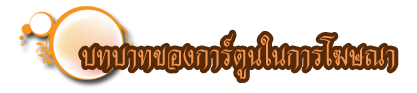 บทบาทของการ์ตูนในการโฆษณา จากผลการวิจัยของนักจิตวิทยาพบว่าเด็กไม่ชอบภาพที่เหมือนจริงซับซ้อน แต่จะชอบภาพลายเส้นง่ายๆ มากกว่า ดังนั้นเด็กจึงชอบการ์ตูนและรับรู้ภาพการ์ตูนได้ดี เพราะภาพการ์ตูนส่วนใหญ่จะมีลายเส้นน้อยไม่ซับซ้อน นอกจากนี้การ์ตูนยังทำให้ผู้ดูเกิดอารมณ์ขันและภาพตัวละครการ์ตูนมักจะแสดงรอยยิ้ม จึงช่วยลดความเครียดและแรงต้านทานของผู้ดูลง การใช้ภาพโฆษณาด้วยการ์ตูนจึงมีส่วนช่วยให้ผู้ใหญ่และเด็กที่เห็นการโฆษณานั้นไม่เกิดความรู้สึกต่อต้าน