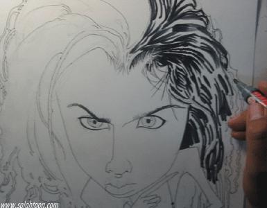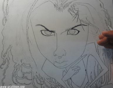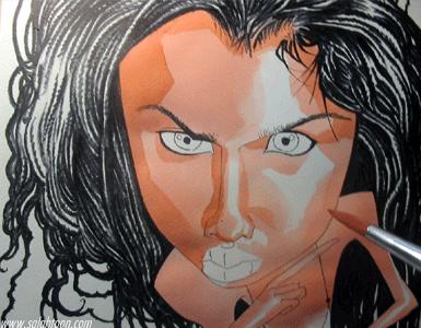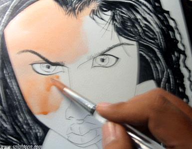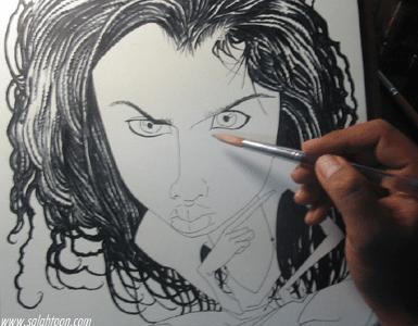 เติม ปาก ตา เสื้อผ้า ทรงผมอีกนิดตามจังหวะแสงเงาของมัน จนรู้สึกพอใจแลล้วก็เซ็นชื่อเป็นอันเรียบร้อย......ภาพนี้ผมเขียนดาราอยู่คนหนึ่งไม่อยากบอก อาย...เขียนยังไงมันก็ไม่เหมือน สงสัย เธอคงสวยเกินไปมั้ง บอกตรงๆคนสวยมันเขียนยาก...
