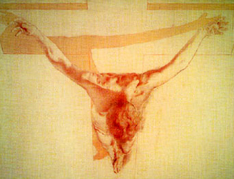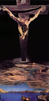 ภาพ Christ of Saint John of the Cross โดย Salvador Dali ; 1951 ผลงานของศิลปินในลัทธิ เหนือจริง (Sur-Realism) เป็นจิตรกรรมที่เน้นมิติ