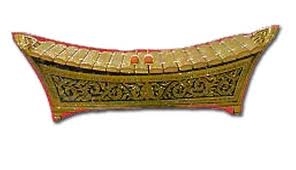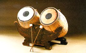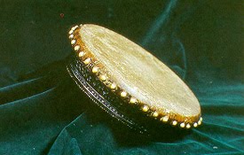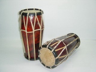 กลองแขก กลองแขกรูปร่างยาวเป็นกระบอกแต่หน้าหนึ่งใหญ่เรียกว่า"หน้ารุ่ย"กว้างประมาณ ๒๐ ซ.ม. อีกหน้าหนึ่งเรียกว่า"หน้าต่าน" กว้างประมาณ ๑๗ ซ.ม. หุ่นกลองยาวประมาณ ๕๗ ซ.ม. ทำด้วยไม้จริง หรือไม้แก่น เช่นไม้ชิงชันหรือไม้มะริดขึ้นหนัง ๒ หน้าด้วยหนังลูกวัวหรือหนังแพะ ใช้เส้นหวายผ่าซีกเป็น สายโยงเร่งเสียง โยงเส้นห่างๆแต่ต่อมาในระยะหลังคงเป็นเพราะหาหวายไม่สะดวก ในบางคราวจึงใช้ สายหวายโยงก็มี สำรับหนึ่งมี ๒ ลูก ลูกเสียงสูงเรียกว่า"ตัวผู้ " ลูกเสียงตำเรียกว่า"ตัวเมีย" ตีด้วยฝ่า มือทั้ง ๒ หน้าให้เสียงสอดสลับกันทั้งสองลูก กลองแบบนี้เรียกอีกอย่างหนึ่งว่า " กลองชวา "