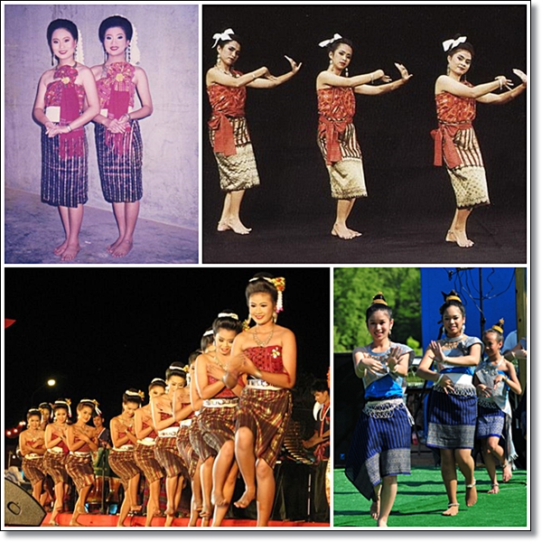1. สวมเสื้อแขนกระบอกสีพื้น นุ่งผ้าถุงมัดหมี่คาดเข็มขัดเงินทับ ผมเกล้ามวย ใช้ฝ้ายสีขาวมัดผมคล้ายอุบะ