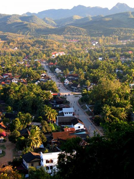 ภาพเมืองหลวงพระบางมองลงมาจากวัดพูสี ซึ่งอยู่บนเขากลางเมืองหลวงพระบาง