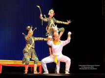 การแสดงรามายณะของกัมพูชา ตอนพระมงกุฎพระลบพบม้าอุปการจึงจับมาขี่ เล่น (ขวา) หนุมานจับนางสุพรรณมัจฉาการแสดงนี้ เหมือนของไทยมาก ทั้งดนตรีและท่วงท่าลีลา