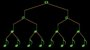 ค่าความยาวเสียงดนตรี ในทีนี้ตัวกลมจะมีค่ายาวที่สุดและตัวอื่นๆคือตัวขาว ตัวดำ และตัวเขบ็ต 1 ชั้น สั้นลงตามลำดับ และเป็นสัดส่วนต่อกัน แผนภูมิต่อไปนี้ เป็นการกระจายตัวโน้ตออกเป็นโน้ตต่างๆ โดยยึดถือค่าตัวโน้ตตัวกลมเป็นหลัd