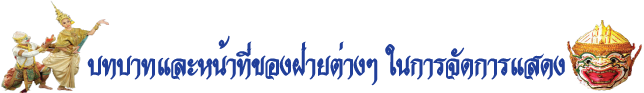 ในการจัดการแสดงมีความจำเป็นต้องมีผู้รับผิดชอบตามหน้าที่ต่างๆ ดังนี้