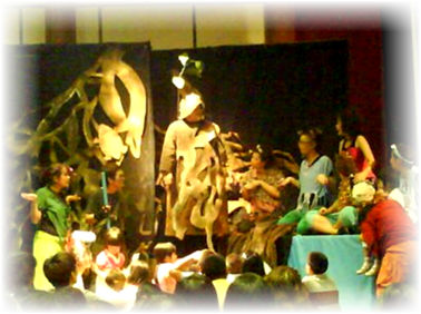 4. ฝ่ายฉาก เวที แสง สี เสียง และดนตรี แม้ว่าจะเป็นเพียงการฝึกการแสดงของนักเรียน นักเรียนก็ต้องมีความรู้ความเข้าใจเรื่องของการจัดฉาก การจัดเวที การใช้แสงเสียงและดนตรีประกอบการแสดง เพราะจะทำให้การแสดงมีชีวิตชีวาขึ้น และเป็นการฝึกบุคลากรที่อยู่เบื้องหลังเวทีการแสดง ในการจัดฉาก เวที เครื่องประกอบฉาก และดนตรี เพื่อให้บรรยากาศสอดคล้องกับเนื้อเรื่อง