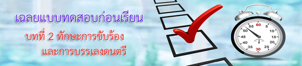 | 13. ข้อใดไม่ใช่เกณฑ์การประเมินพัฒนาการทางดนตรี |