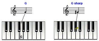 1. ใช้ยกระดับเสียงของโน้ตให้สูงขึ้นครึ่งเสียง |