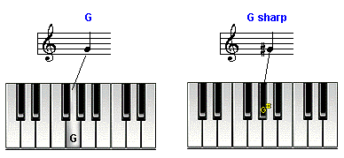 ตัวอย่างโน้ตเพลงสากลที่มีเครื่องหมายแปลงเสียง
