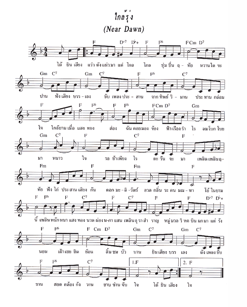 ตัวอย่างเพลงไทยสากล(เพลงพระราชนิพนธ์) ที่มีเครื่องหมายแปลงเสียง