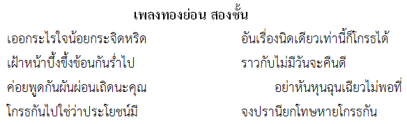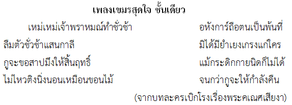 ตัวอย่างบทเพลงไทยที่แสดงความรู้สึกต่างๆ