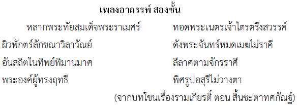 ฉะนั้นการพิจารณาคัดเลือกบทประพันธ์ ใดมาเป็นบทร้องหรือจะแต่งใหม่ทั้งหมดเลย ก็จำเป็นที่จะต้องพิจารณ าและแต่งให้ความให้จบในแต่ละอัตราจังหวะ เพื่อความสมบูรณ์ น่าฟังของบทเพลงนั้นๆด้วย