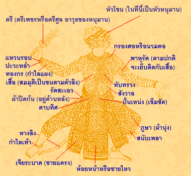 เครื่องแต่งตัวลิง คือ เครื่องแต่งกายของผู้แสดงที่แสดงเป็นตัวลิง ประกอบด้วยส่วนประกอบของเครื่องแต่งกาย ดังภาพ