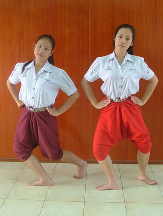 ลักษณะการก้าวและก้าวข้างของตัวนางและตัวพระ