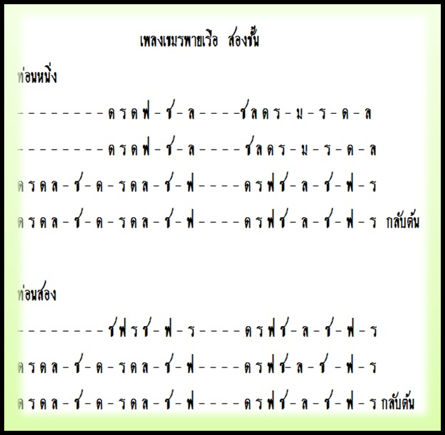 เมื่อเราทราบว่ากลุ่มเสียงกลุ่มทำนองต่างๆ โดยอาศัยบันไดเสียงทั้ง 7 บันไดเสียงแล้ว เราจึงนำบันไดเสียงต่างๆมาเรียงร้อยเป็นทำนองเพลงต่างๆโดยจะมีท่วงทำนอง กรอ เก็บ ทำนองกรอสลับเก็บ