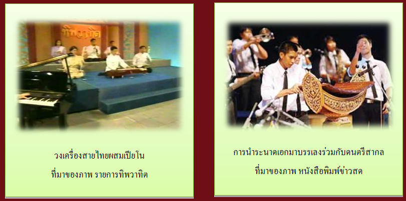 การนำวงดนตรีไทย และวงดนตรีสากล มาผสมเพื่อบรรเลงรวมกันนั้น ต้องมีหลักการในการนำเครื่องดนตรีทั้งสองอย่างมาผสมเพื่อบรรเลงรวมกัน ดังนี้ 1. ประเภทของเครื่องดนตรีที่จะนำมาผสมกัน