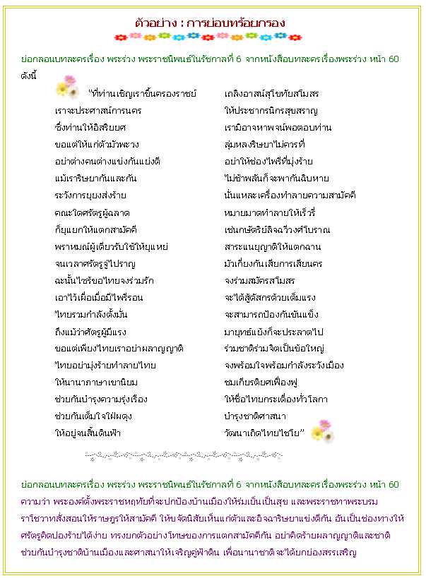 ขอบคุณเว็บไซร์ : http://www.chulapedia.chula.ac.th/index.php/ร้อยแก้ว_ร้อยกรอง