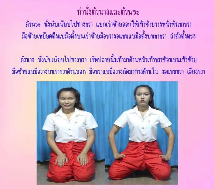 ที่มา : http://thaiclassicaldances.wikispaces.com/ท่านั่งตัวนางและตัวพระ