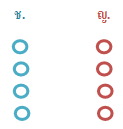 1. แถวตอนลึก ผู้แสดงฝ่ายชายจะอยู่ด้านซ้าย ฝ่ายหญิงอยู่ฝ่ายขวา