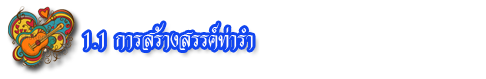 1.1.3 การสร้างสรรค์ท่ารำในแม่บท คือการนำท่ารำในแม่บทมาประดิษฐ์สร้างสรรค์ท่ารำ เพื่อสื่อความหมายตามบทร้อง ยึดให้เป็นแบบแผนมาตรฐานทางนาฏศิลป์