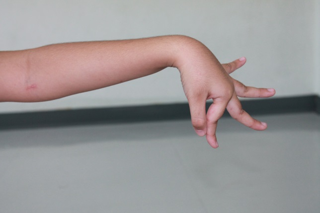 ส่ายมือ มือทั้งสองตั้งวงแขนตึงระดับไหล่ ส่ายมือขึ้น ลง สลับกัน ไป-มา