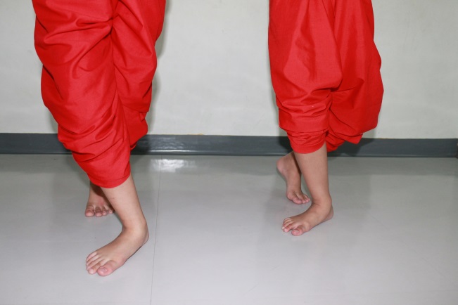 ตัวพระ ส้นเท้าจะชิดติดกัน แต่ปลายเท้าจะเปิดออก จากกัน