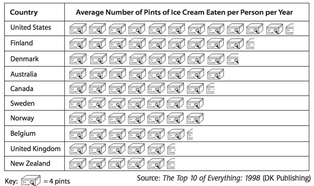 | 1. On average, about how much ice cream does a person in Australia eat per year? |