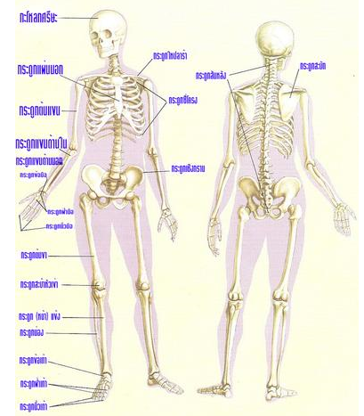 โครงกระดูกเป็นรูปแบบโครงสร้างของร่างกาย ช่วยทำให้ร่างกายเป็นรูปเป็นร่างป้องกันอันตรายและเป็นการยึดเกาะของกล้ามเนื้อ ทำให้ร่างกายเคลื่อนไหวได้โครงกระดูกเป็นเนื้อเยื่อที่มีชีวิตประกอบด้วย กระดูกอ่อนและกระดูกแข็งมีการเสริมสร้างซ่อมแซมใหม่อยู่ตลอดเวลา เพศหญิงมีโครงกระดูกที่เล็กและเบากว่าโครงกระดูกของเพศชาย กระดูกของมนุษย์ทั้งร่างกายมีอยู่ทั้งสิ้น206 ชิ้น แบ่งออกเป็น 2 กลุ่มคือ