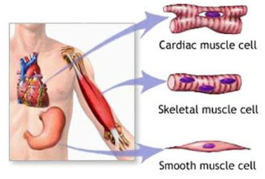 ร่างกายแบ่งกล้ามเนื้อออกเป็น 3 ชนิด คือ กล้ามเนื้อยึดกระดูกหรือกล้ามเนื้อลาย (skeletal muscle or striatedmuscle) กล้ามเนื้อเรียบ (smoothmuscle) กล้ามเนื้อหัวใจ (cardiac muscle) โดยที่กล้ามเนื้อลายนั้นถูกควบคุมอยู่ภายใต้อำนาจจิตใจหรือรีเฟล็กซ์  ส่วนกล้ามเนื้อเรียบและกล้ามเนื้อหัวใจทำงานนอกอำนาจจิตใจ