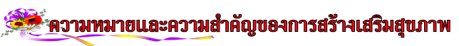 การสร้างเสริมสุขภาพ มีความสำคัญต่อการดำเนินชีวิตของบุคคลทุกคนที่ต้องการเป็นคนมีสุขภาพดี การมีสุขภาพที่ดีสมบูรณ์จะเป็นทุนในการประกอบกิจกรรมและภารกิจในชีวิตประจำวัน ตามบทบาทหน้าที่ความรับผิดชอบของตนเองได้อย่างมีประสิทธิภาพ จะเห็นได้ว่าการดำเนินงานทางด้านสุขภาพในปัจจุบัน มีการเปลี่ยนแปลงไปจากเดิมที่มุ่งเน้นระบบสุขภาพเป็นระบบสร้างนำซ่อม กล่าวคือเดิมสุขภาพเป็นระบบตั้งรับ คือรอให้เจ็บป่วยแล้วจึงนำมาซ่อมหรือนำมารักษา ทำให้ประชาชนคนไทยเจ็บป่วยและตายก่อนวัยอันควร เกิดการสูญเสียทางเศรษฐกิจเป็นจำนวนมาก แต่แนวคิดปัจจุบันเป็นระบบเชิงรุก พยายามทำทุกวิถีทางที่จะสร้างสุขภาพให้มีสุขภาพดีให้มากที่สุด ซึ่งทุกคนจะต้องมีความรู้เกี่ยวกับสุขภาพและมีการปฏิบัติตน หรือมีพฤติกรรมสุขภาที่ถูกต้องโดยมีการปฏิบัติที่ทำให้มีความสุขที่ดี และหลีกเลี่ยงพฤติกรรมเสี่ยงหรืองดการกระทำที่เสี่ยงหรืออาจเป็นอันตรายต่อสุขภาพ เช่น มีการออกกำลังกายเป็นประจำ การกินอาหารที่ถูกหลักโภชนาการ การระมัดระวังเรื่องอาหารการกินที่ปลอดภัย ไม่มีสารพิษปนเปื้อนการส่งเริมสุขภาพจิต การจัดการกับความเครียดด้วยตนเอง การลดความเสี่ยงจากการป้องกันและหลีกเลี่ยงสารเสพติดและอบายมุขต่างๆ เป็นต้น หน่วยงานต่างๆ ที่เกี่ยวข้องกับการดำเนินงานในเรื่องสุขภาพ ได้ให้ความสำคัญกับการสร้างเสริมสุขภาพมาโดยตลอด ดังจะเห็นได้จากปัจจุบันมีการดำเนินการสร้างกระแสในเรื่องการสร้างสุขภาพอย่างต่อเนื่อง ทำให้ประชาชนมีความตื่นตัวเกิดความตระหนัก และมีการปฏิบัติตัวในการดูแลสุขภาพของตนเองมากขึ้นสิ่งต่างๆ ดังกล่าวล้วนเป็นการสร้างเสริมสุขภาพทั้งสิ้น ถ้าการสร้างเสริมสุขภาพอย่างต่อเนื่องจะทำให้ไม่เจ็บป่วยเป็นโรคต่างๆ โดยเฉพาะโรคที่สามารถป้องกันได้ เช่น โรคไม่ติดต่อเรื้อรัง หรือโรคที่เกิดจากวิถีชีวิต ได้แก่ โรคหลอดเลือดหัวใจ โรคความดันเลือดสูง โรคเบาหวาน และโรคอ้วนลงพุง เป็นต้น ซึ่งจะเป็นผลให้มีสุขภาพแข็งแรง ไม่เกิดการเจ็บป่วย สามารถลดค่าใช้จ่ายในการรักษาพยาบาล และลดอัตราการป่วยด้วยโรคที่เกิดจากวิถีชีวิตให้น้อยลงได้