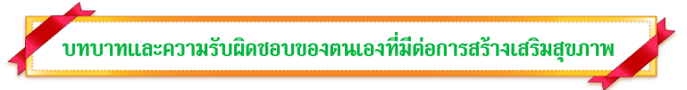 การดูแลสุขภาพถือเป็นความรับผิดชอบของบุคคลทุกคน เพราะ สุขภาพเป็นเรื่องส่วนบุคคลไม่สามารถหยิบยื่นให้กันและกันได้ การที่เราจะมีสุขภาพดีหรือไม่ดีนั้นขึ้นอยู่กับปัจจัยหลายประการคือ พันธุกรรม สิ่งแวดล้อม คุณภาพของบริการสุขภาพ และพฤติกรรมสุขภาพของบุคคล