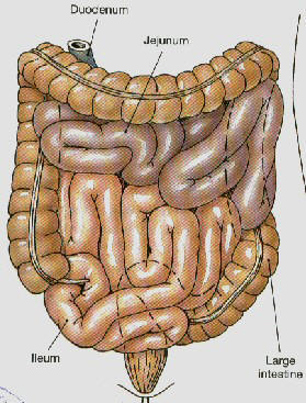 3. ไอเลียม (Ileum) เป็นลำไส้เล็กส่วนสุดท้าย ปลายสุดของ Ileum ต่อกับลำไส้ใหญ่มีขนาดเล็กและยาวที่สุดประมาณ 4.3 เมตร
