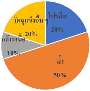 | 10. จากแผนภูมิ ส่วนประกอบส่วนใหญ่ของร่างกายคนคือข้อใด |