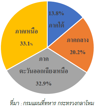 แผนภูมิแสดงร้อยละของพื้นที่ของประเทศไทย จำแนกเป็นรายภาค
